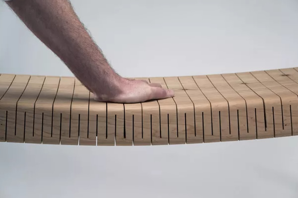 Ricardo Garza Marcos, arquiteto e designer, é o nome por trás do Bend, um banco flexível construído em madeira e aço. Para deixar a peça maleável, o profissional criou cortes ao longo da estrutura do assento, que criam um visual único e ainda permitem que a madeira “dobre” quando alguém se senta.